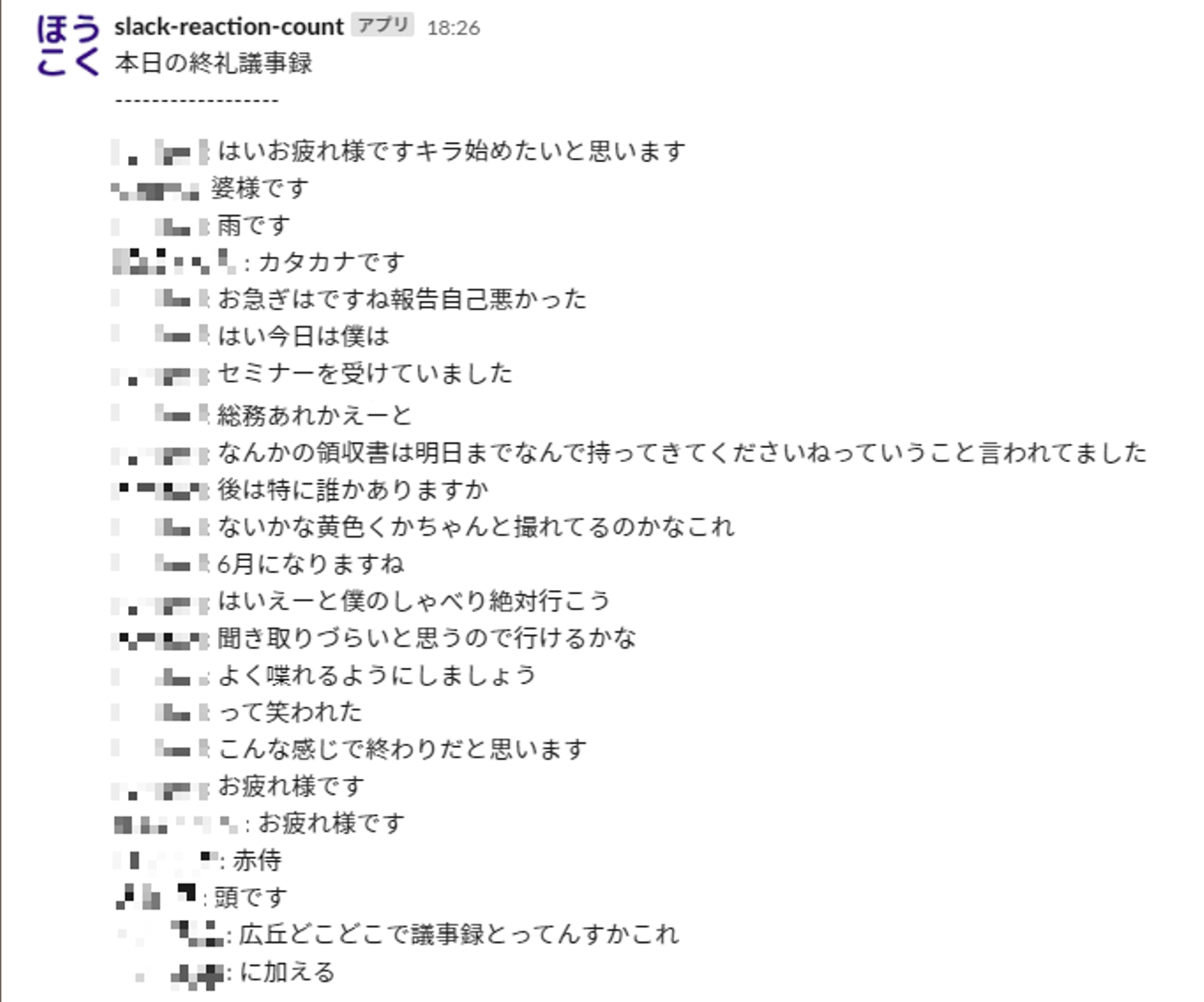 と思っていたので、「終礼の議事録bot」がきっかけを作ってくれていて、とってもいいなぁと思っています。