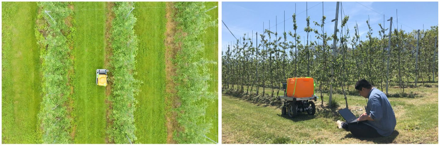 長野県安曇野市でりんごの高密植わい化栽培を行う農家さんにご協力いただき、Mobile Moverの実証実験を行っています。