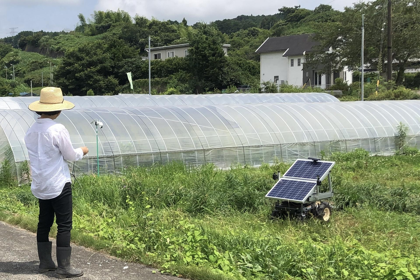 「暑い夏は外に出たくないよね…」といって、エンジニアが太陽光パネルを搭載してみたり、事務所から遠隔で操作してみたり。でも、最後は「刈った方が早いね!」と一蹴。