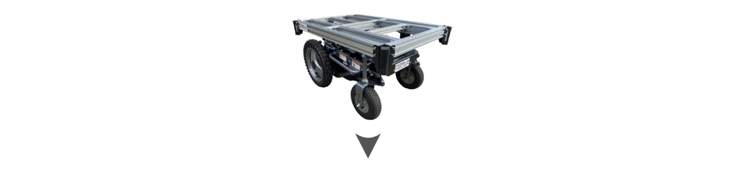 ベースとなる足回りにワーク(作業機)を付け替えることで、1台で何役もこなす「マルチワーク可能なロボット台車」として、足回りに新たな価値を見いだしました。