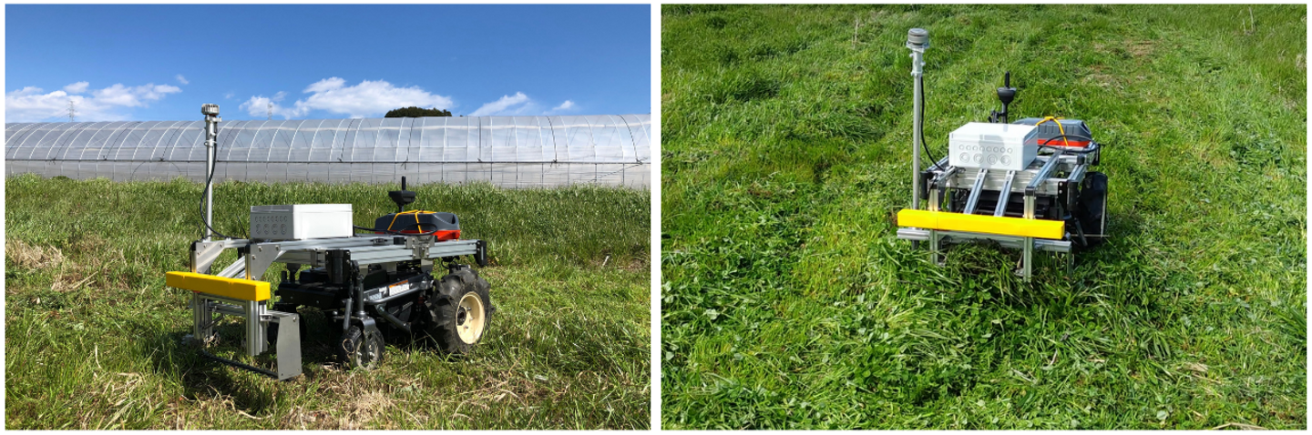 この日は、自社農場での草刈り作業に出動要請。試作テストを兼ねて、いざ出陣。