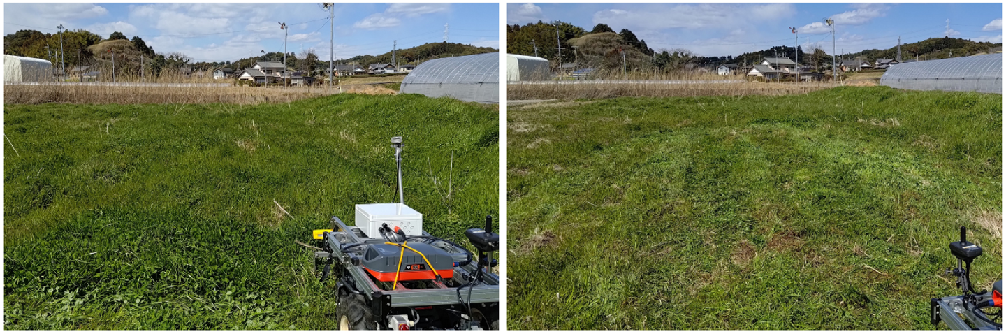 Mobile Mover走行後。写真では少し分かりにくいですが、実際はしっかり刈れています。