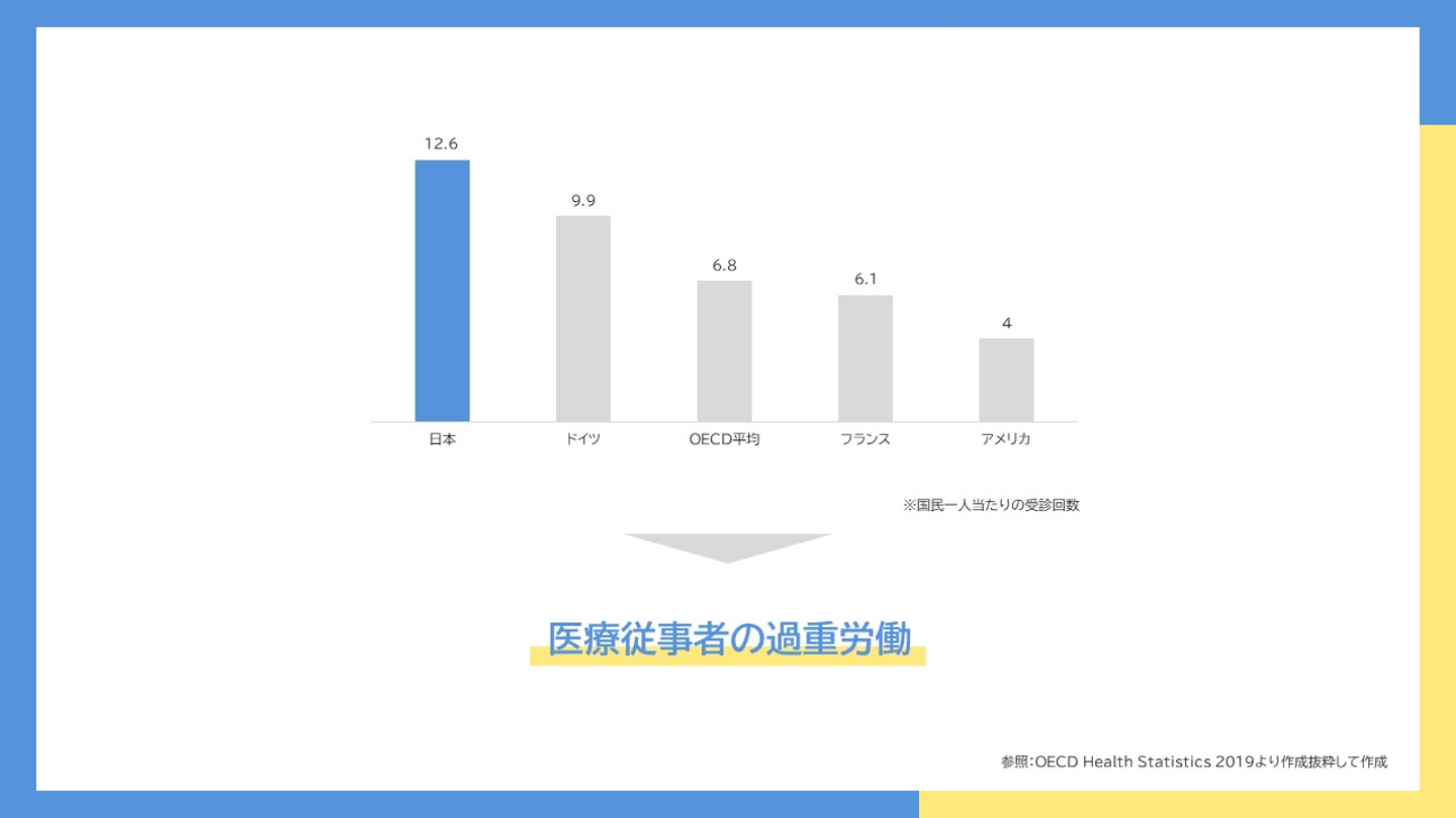 実際、日本の国民1人あたりの受診回数は年間で12.6回だといわれ、諸外国と比較しても非常に多いです。