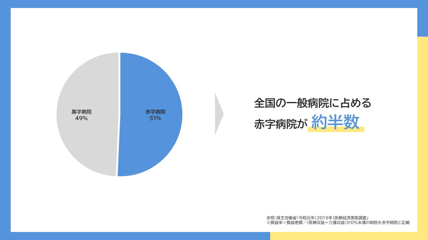実は全国の病院の半数が、赤字経営で苦しんでいるという実態があります。