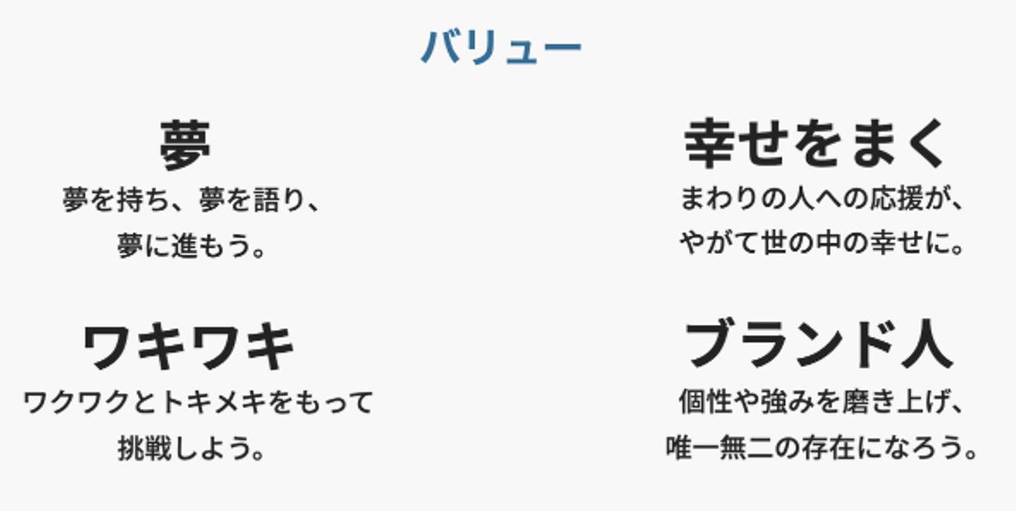 当社のValueの一つにも「ブランド人」というものを掲げています。それは個々が自身の強みを磨いてほしいという想いがありつつも、1人で戦うのではなく、強みを活かしながら、皆が活躍してほしいという想いが込められています。
