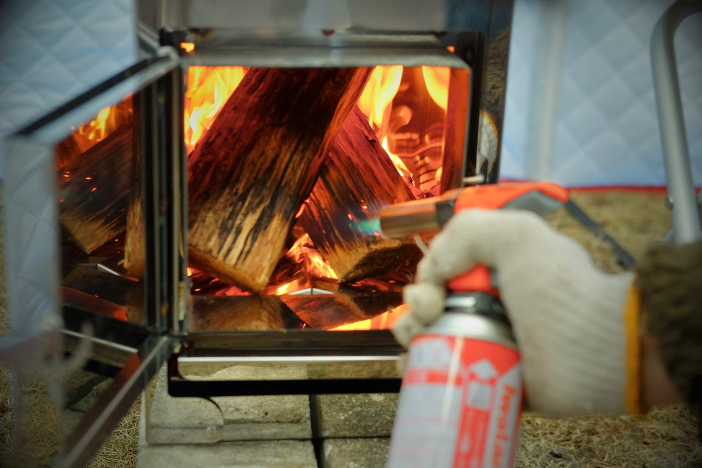 安全に設置が完了し、いよいよ火を入れていきます。