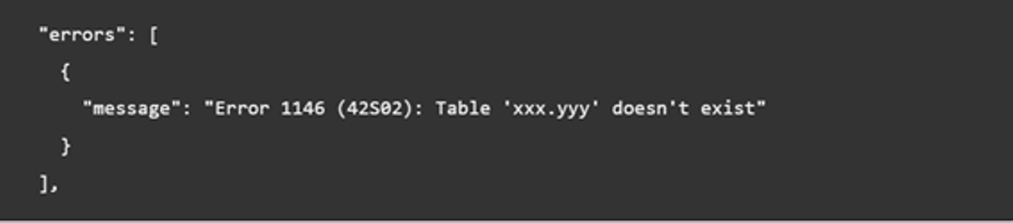 record not found の場合は変更前後でmessageの差異はありませんが、 table not found の場合の変更前ではDBのエラーコードもそのまま出てしまっています。
