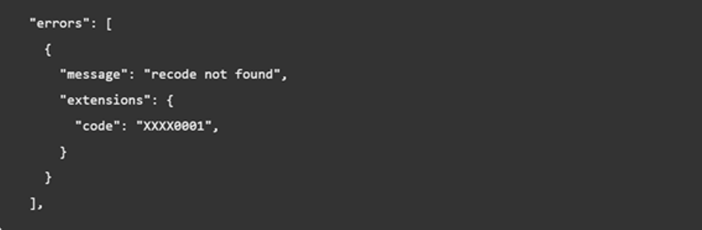 またGraphQLの標準エラー形式ではエラーコードに該当するフィールドが存在しませんが、拡張フィールドを利用してどちらの場合もcodeも返却するようにしました。