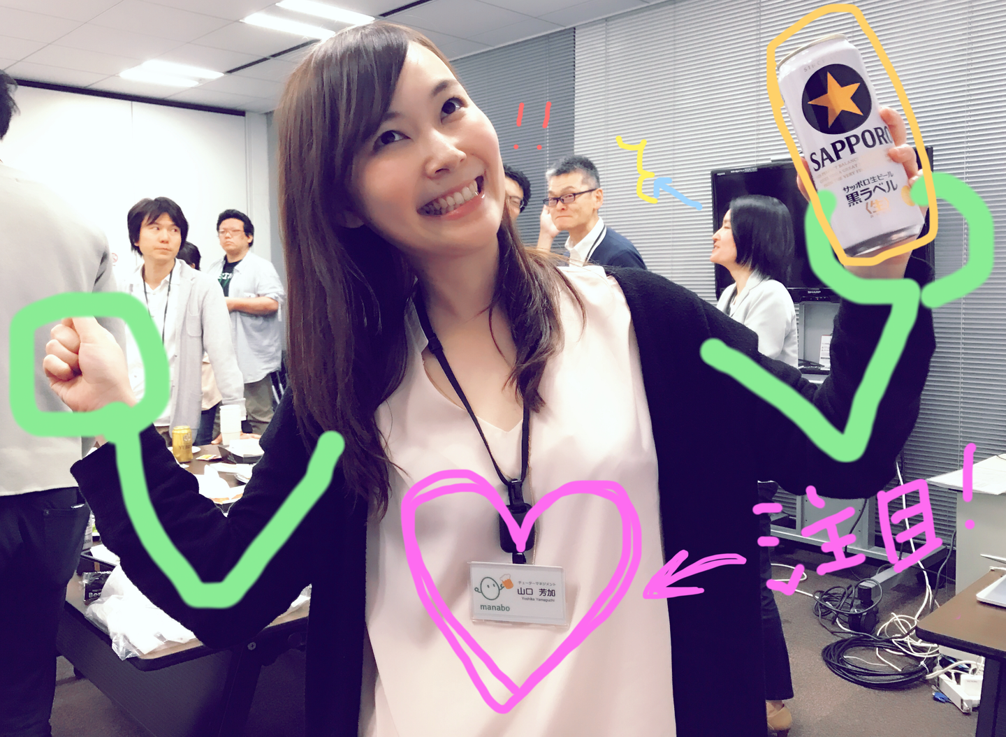 しかもよく見ると名札には、マナボ公認キャラクターまなたまちゃんが、それぞれの人に合わせて、いろんなポーズを取っているではないか!!