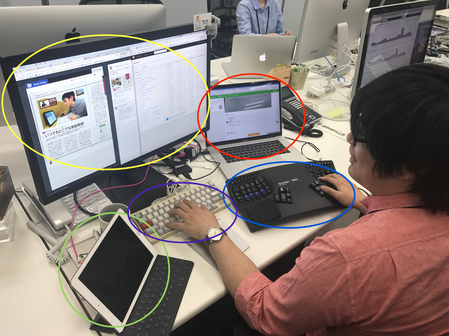 ※印字なしのキーボードと不思議な形のキーボードを使いこなす弊社社員