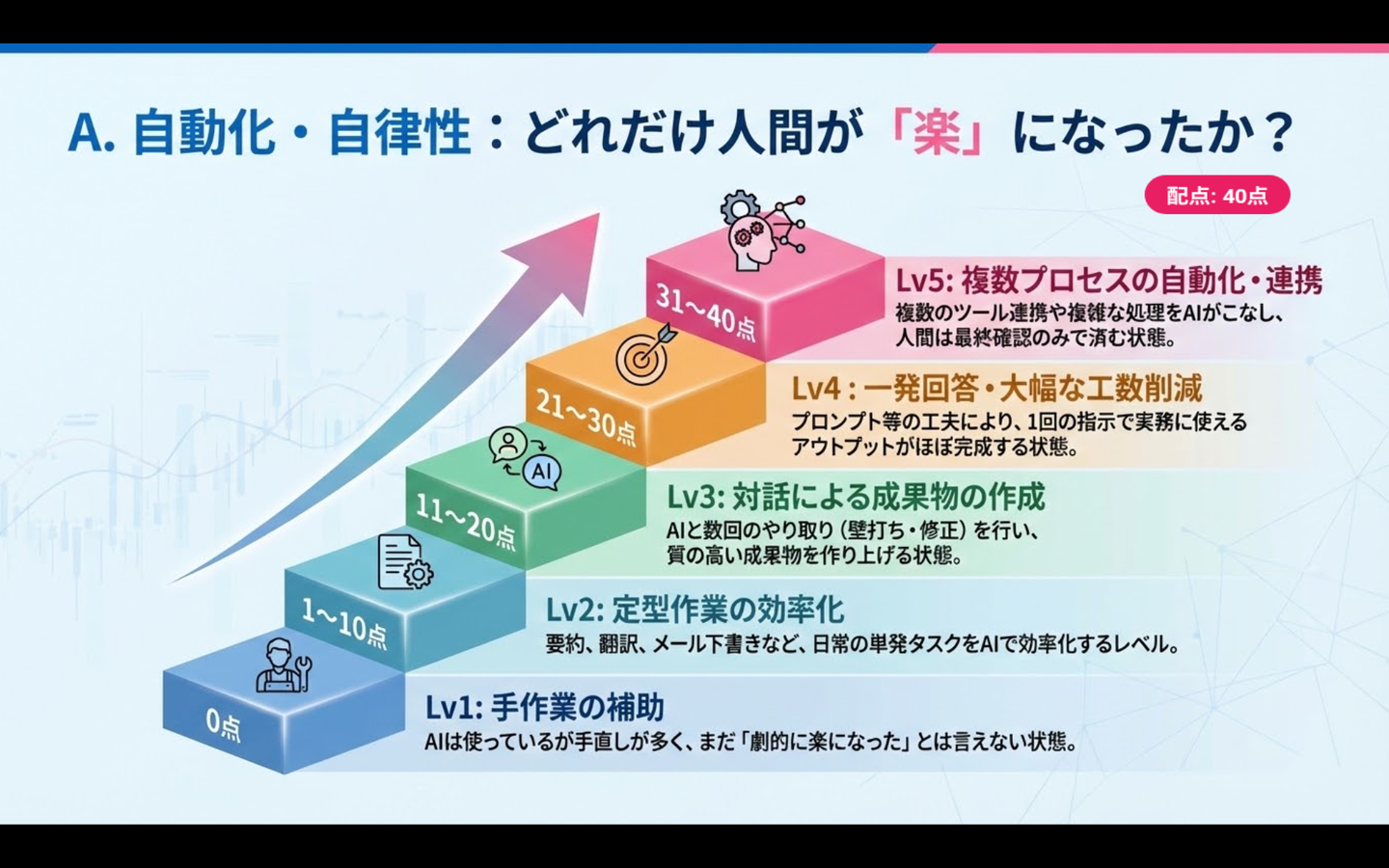 AIを使ったかどうかではなく、AIによって仕事がどれだけ変わったかを評価しました。