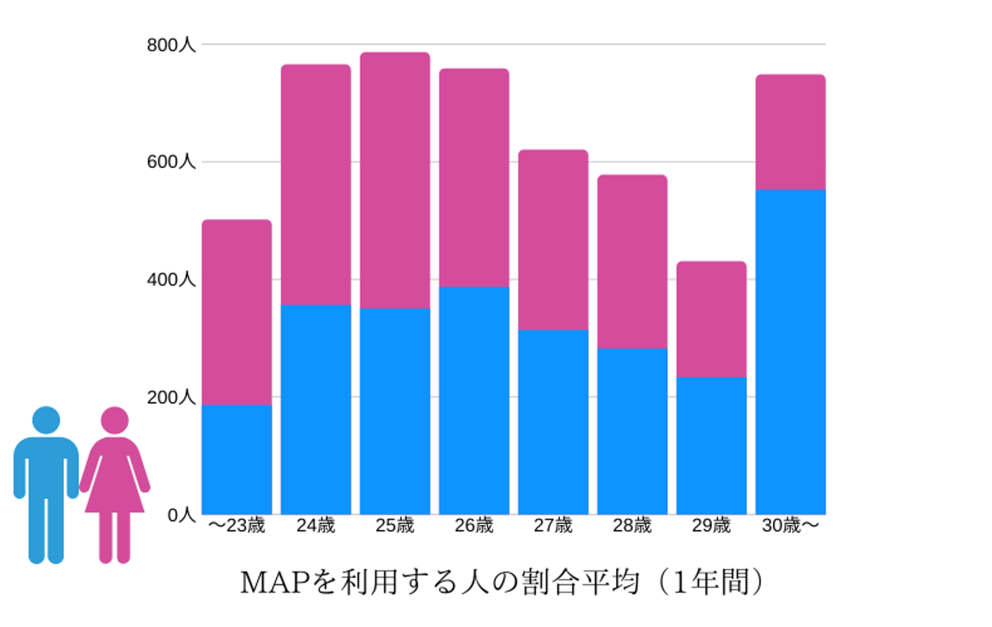 MAPを利用する方の男女比率はどんな感じなのでしょうか?こちらのグラフをご覧ください。