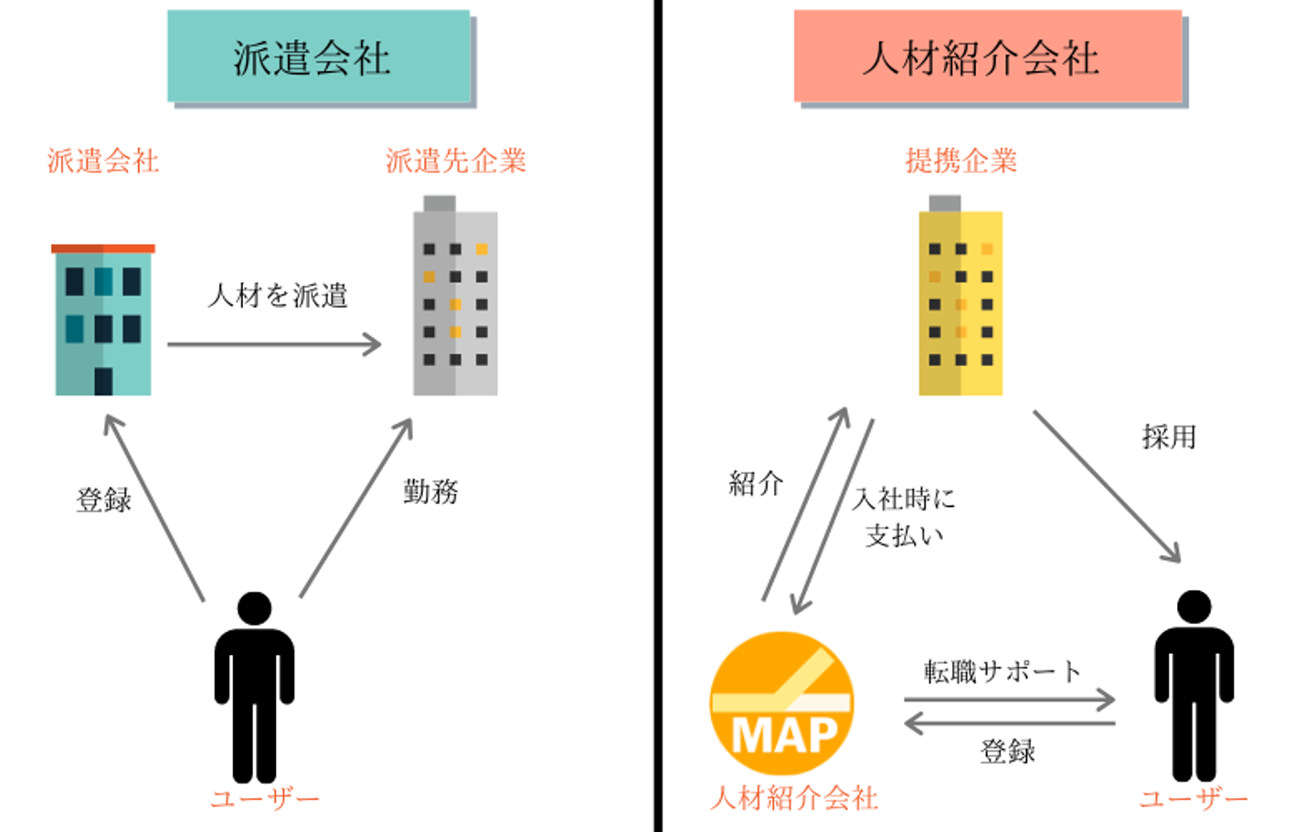 派遣会社と紹介会社の違い、そしてMAPが大切にしている「求職者様ファースト」の姿勢をご紹介しました。