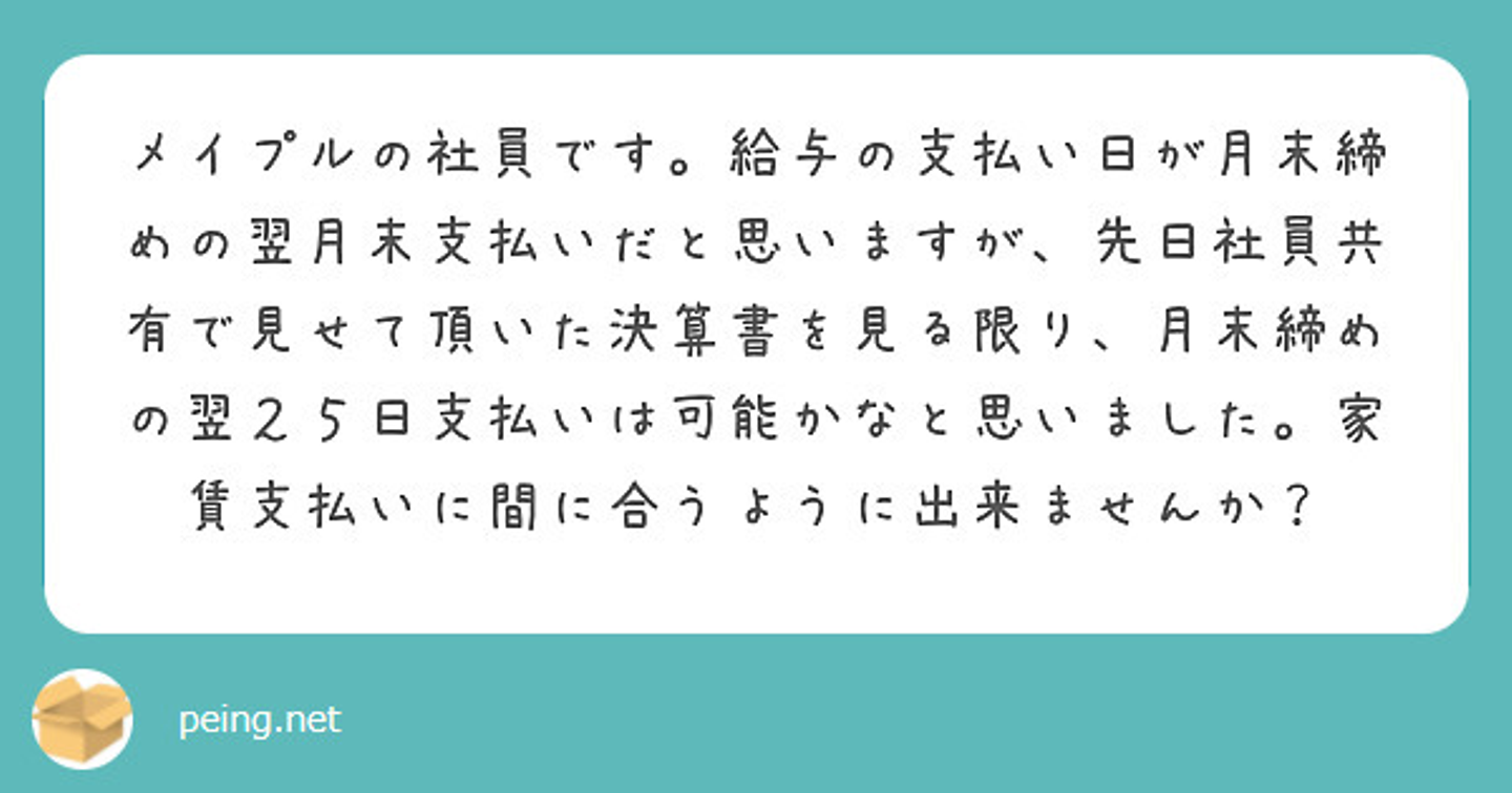 家賃支払いに間に合うように給与日を25日に変更できませんか?
