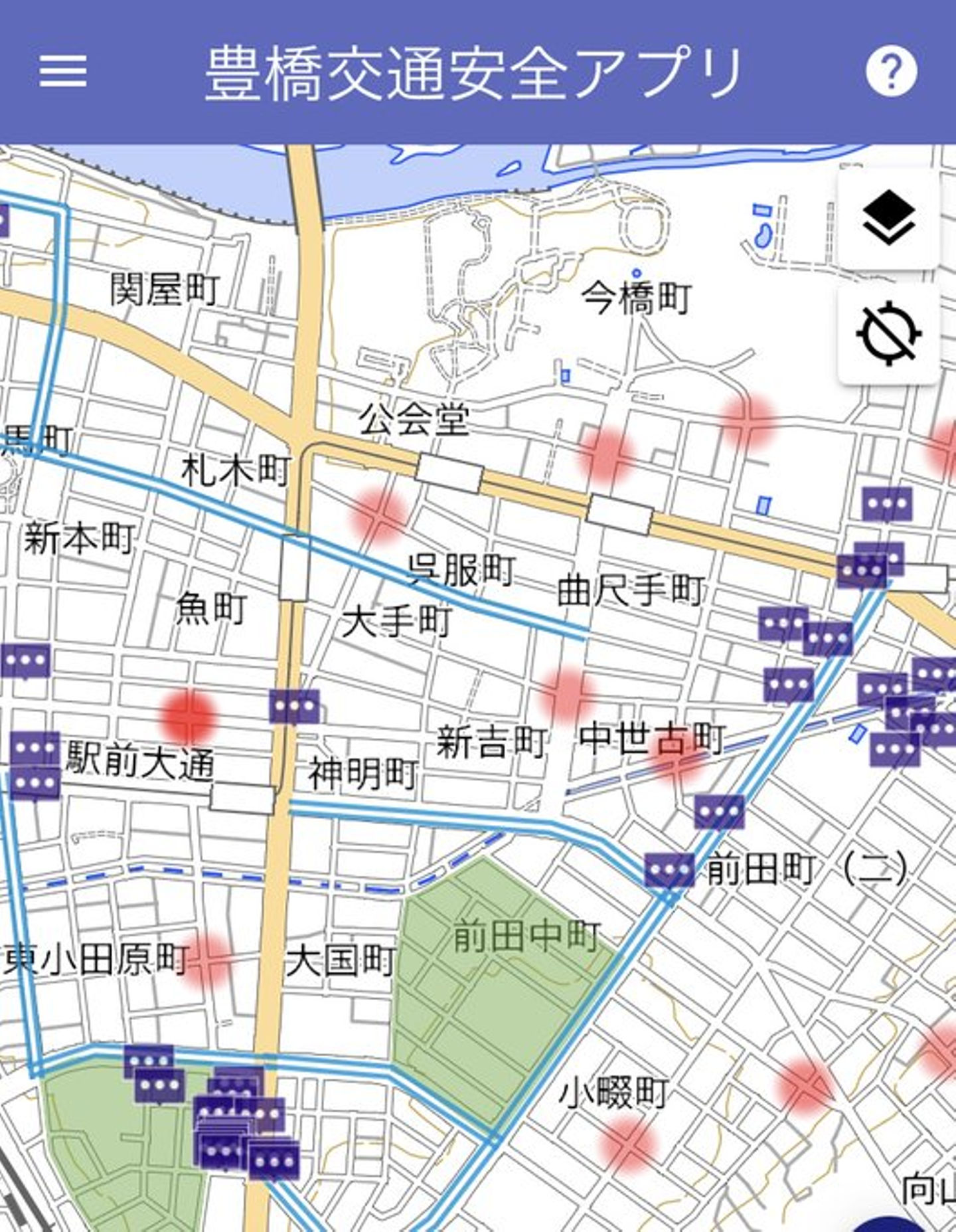 豊橋市内の交差点などにおける、交通事故の危険箇所を把握できる交通安全アプリの運用が始まりました。地図データに事故が起きやすい地点や注意が必要な横断歩道等も確認することができます。