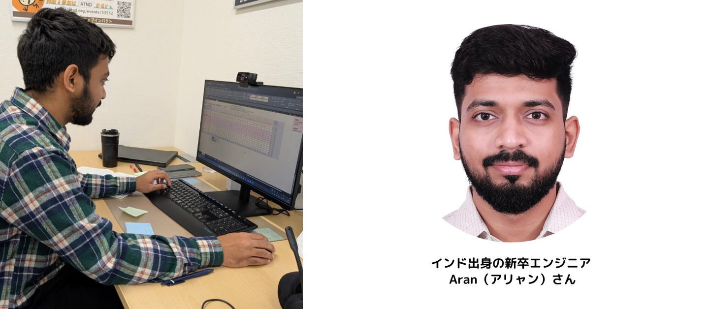 今年2月よりチームに参加したのは、インド出身の新卒エンジニア Aran(アリャン)さん。Jain Universityを卒業し、日本での勤務が彼にとって初めての海外での仕事となります。