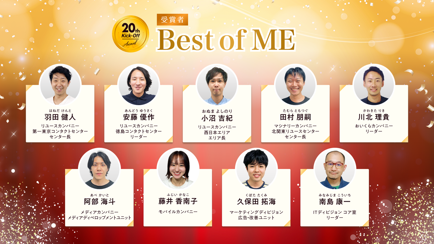 また、「Best of ME」は、全社員の事前投票でノミネート者を選出後、各事業責任者や役員の協議により受賞者を決定し、キックオフ当日に表彰される形となりました。