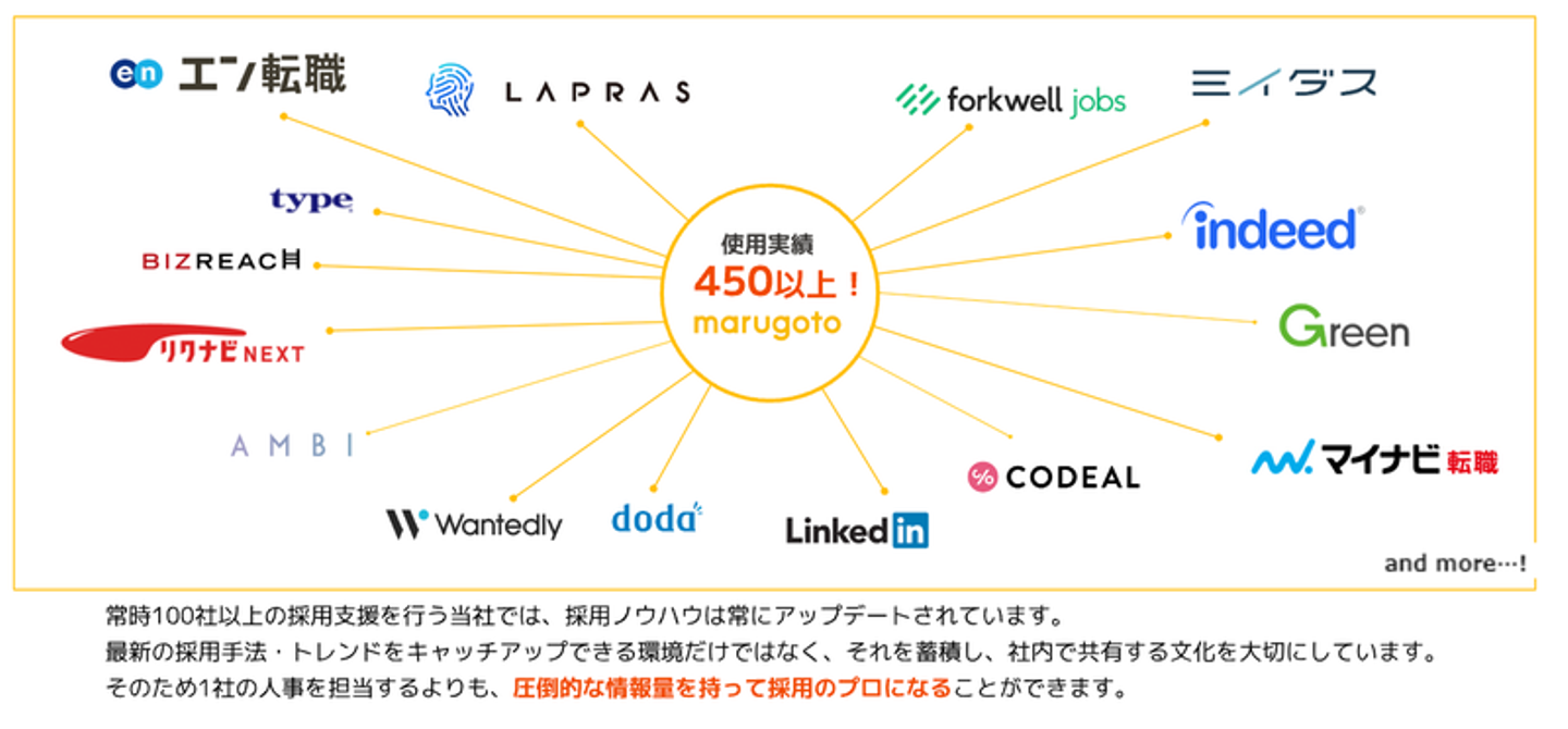 各社の採用は採用市場と連動していく必要もあり、リアルタイムのノウハウも必要で、再現性も必要で、業種・職種の幅の広さも必要です。そこを仲間と一緒に学び合いながら実践しながら、採用の専門職になる道を提供できるのがマルゴトの職場の提供価値です。
