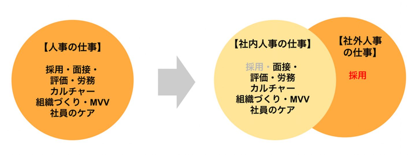 採用の専門職になってくるのは、どういう状況かというと、社内の人事と社外の人事が分かれることになりそうです。税理士、弁護士、社労士みたいなイメージだと考えるとわかりやすいかもです。