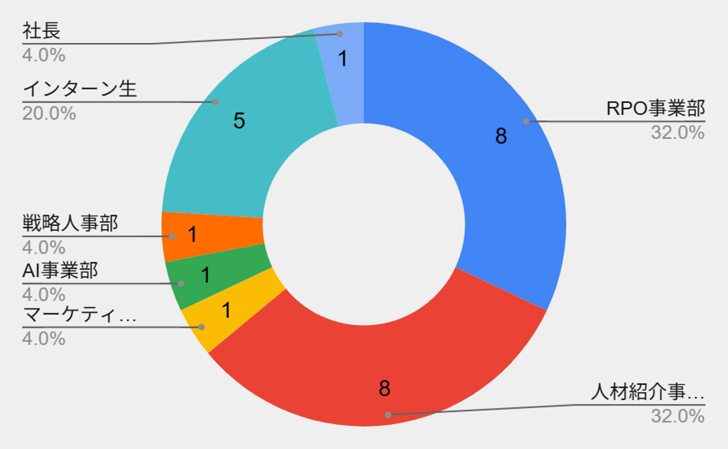 今日時点(2025.10.08)で、社員が20名、インターン生が5名の組織。