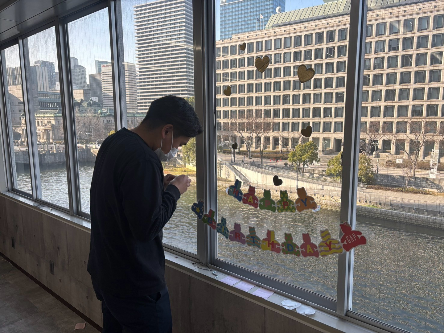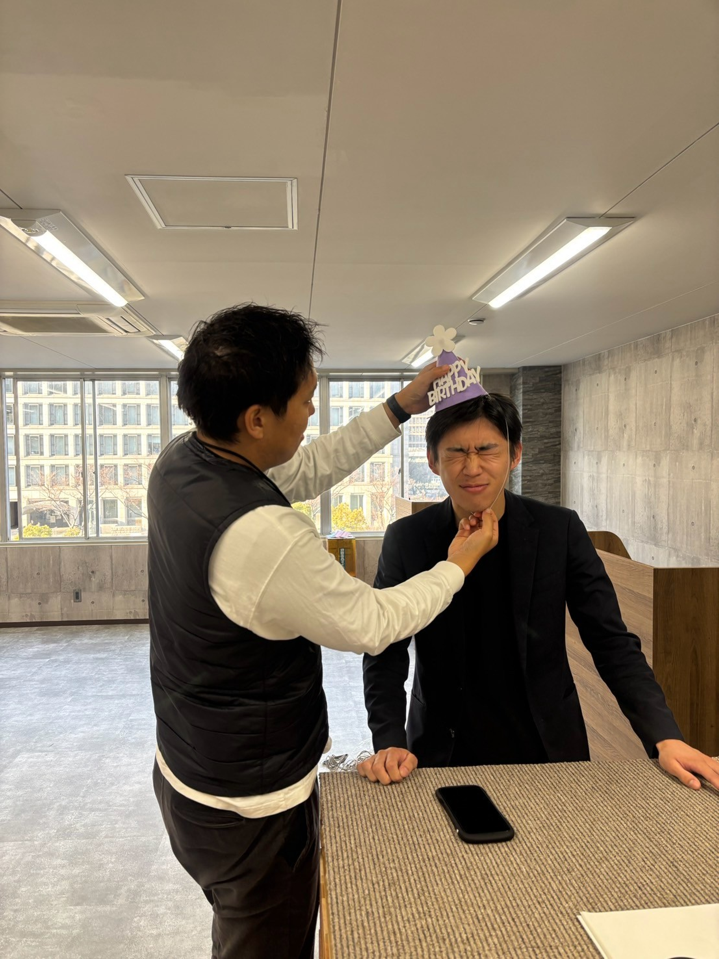 我々は、中野さんが7階のオフィスで商談に勤しんでいる間に、ひっそりとお祝いの準備を4階でしました。