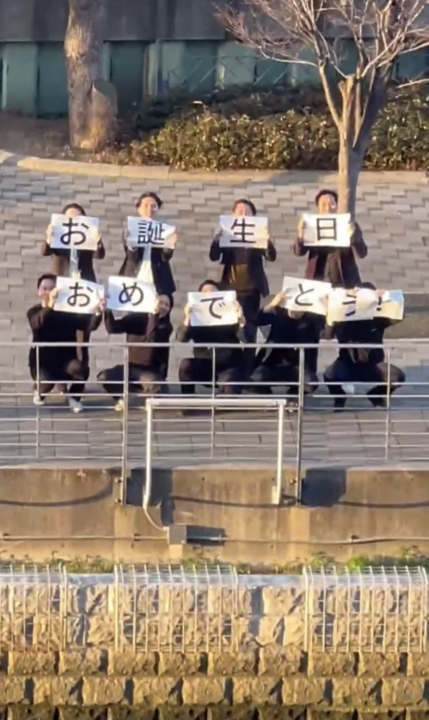 中野さんがサプライズ会場(4階)に移動する。ふと外を眺めると、外には