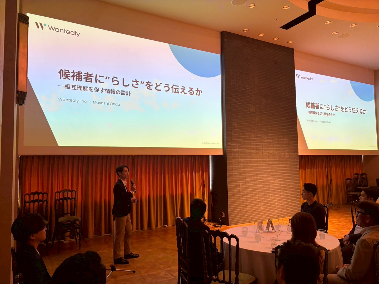▲求職者へ、自社"らしさ"を伝えるために、会社のリアルを候補者へ伝える導線設計について、Wantedlyの活用事例を踏まえてお話されました。