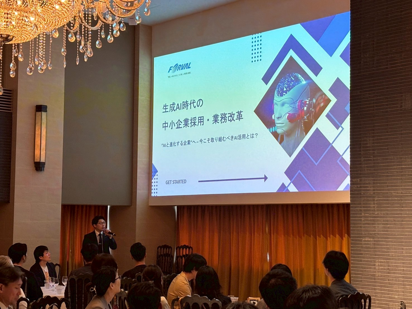 ▲近年の効果的な採用手法や、数ではなく理念共感で採用することが会社に与えるインパクトについて、代表の中野より講演を行いました。