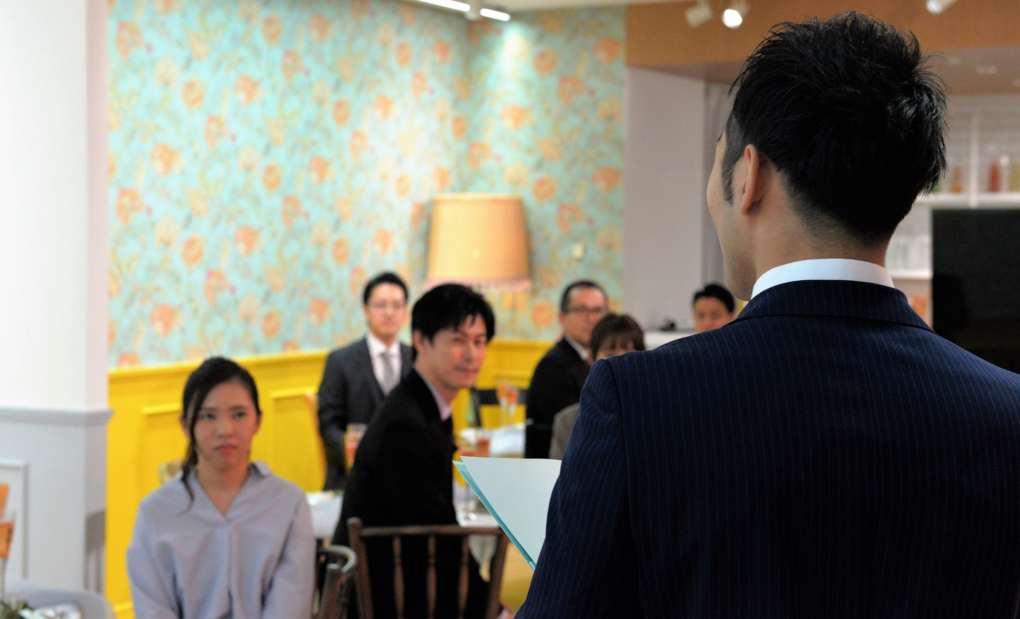 5年前に新卒入社して、現在部長を勤めている社員から、実際の乾杯(残念ながらお酒ではないです!)とともに、挨拶がありました。