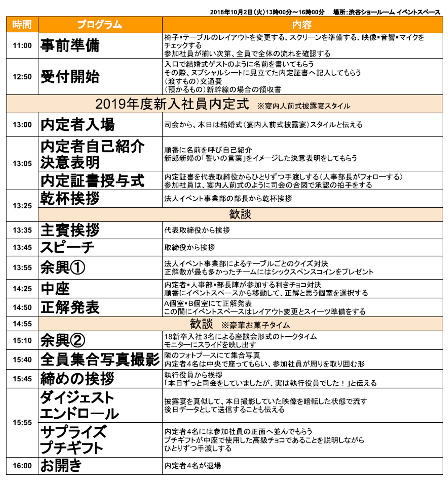 一生に一度の内定式を忘れられないイベントにしよう!という想いから、