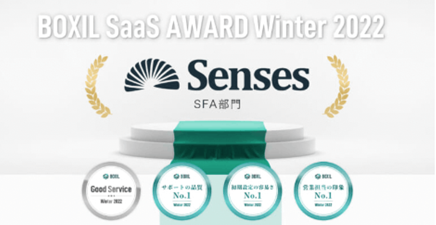 クラウド営業支援ツールSensesが「BOXIL SaaS AWARD Winter 2022」SFA部門で「Good Service」「営業担当の印象No.1」「サポートの品質No.1」「初期設定の容易さNo.1」に選出されました! | 株式会社マツリカ | Mazrica Inc.