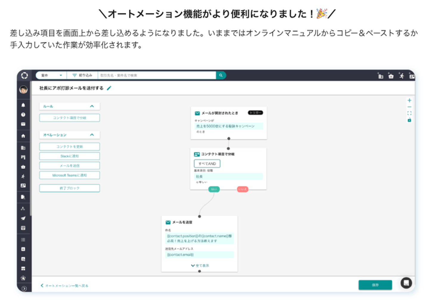 以前は手動でオンラインマニュアルから差し込み項目をコピー&ペーストするか、手入力しなければなりませんでしたが、新しい仕組みでは画面上から差し込めるようになりました。