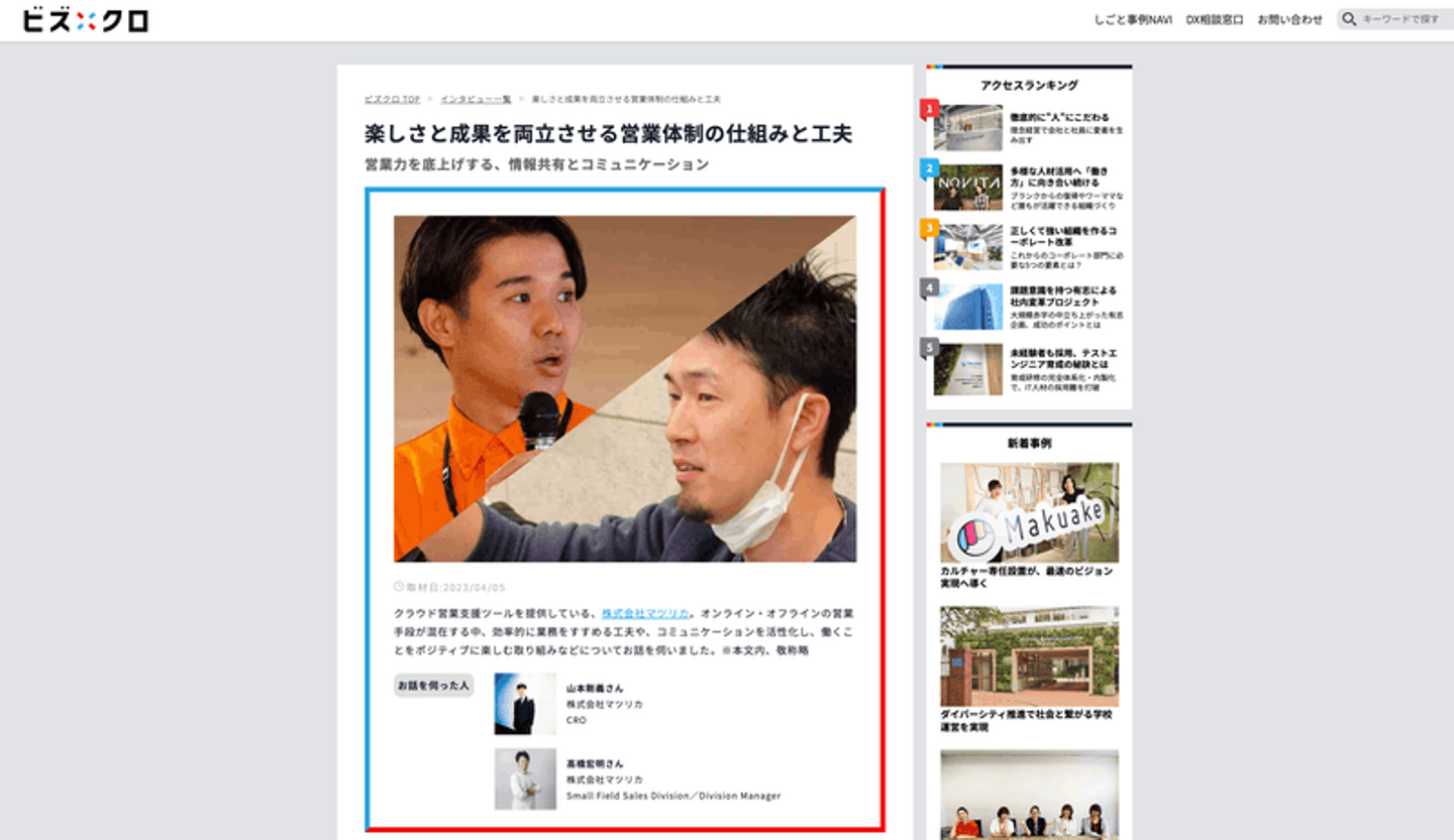 ・「ビズクロ」のサイトにて、インタビュー記事が掲載されました