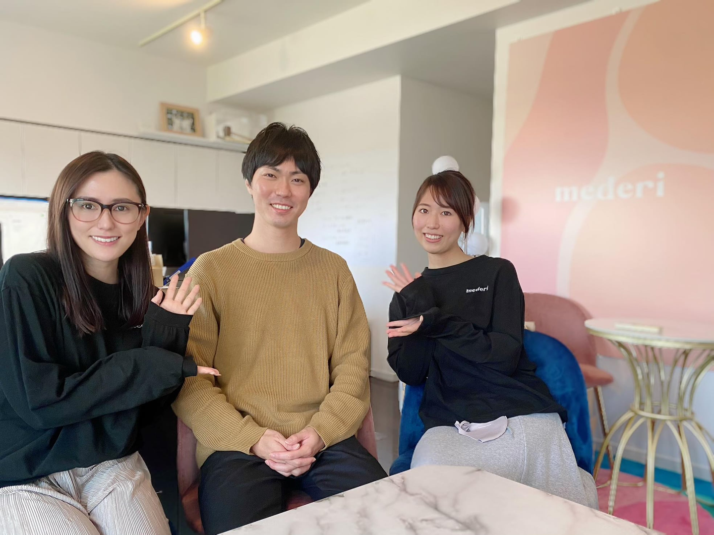 mederiの第二号社員(写真中央)の、大池 優貴(おおいけ ゆうき)さん。事業責任者が爆誕して、とっても頼もしいです。