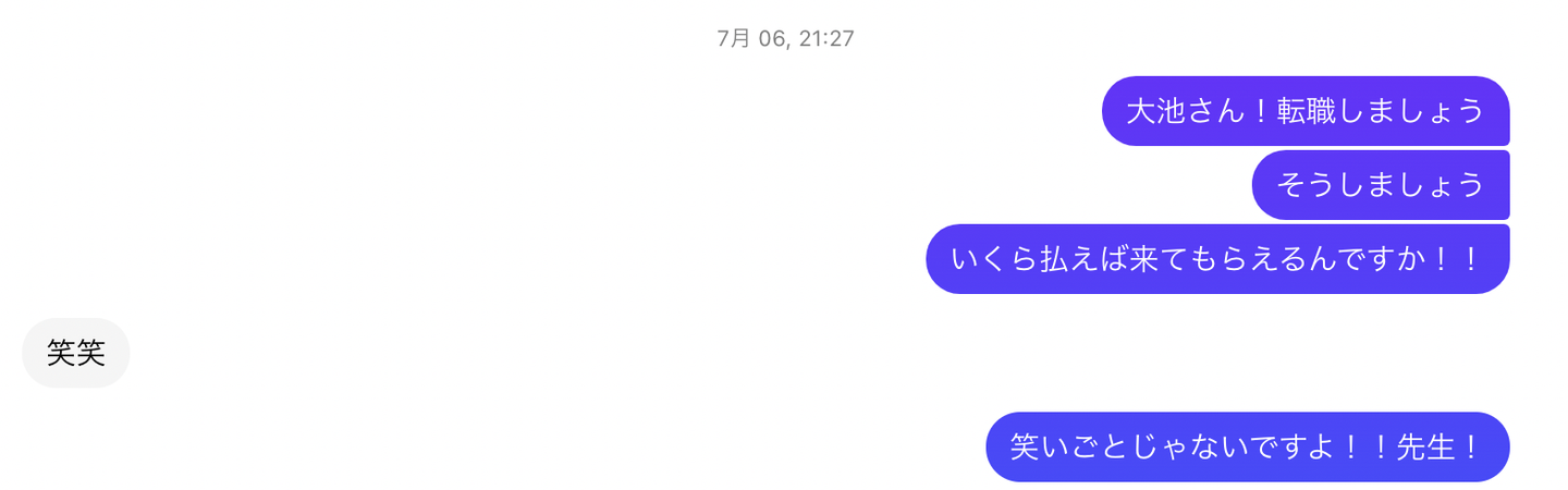 【大池】この圧は中々印象深かったですね(笑)。でもこうやって求めてもらったことは素直に嬉しかったですし、話を聞いてみようと思ったのも、このアグレッシブなメッセージだったからこそなんじゃないかなと。