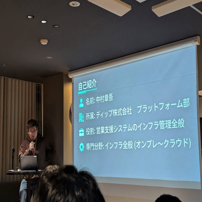 インフラの社内向け自動障害調査システム「AIDS」について解説していただきました。のちの懇親会でしゃべらせていただきましたが、社内で外部登壇が励行されているようでした。今後もどこかの場面でお会いできると楽しみです。
