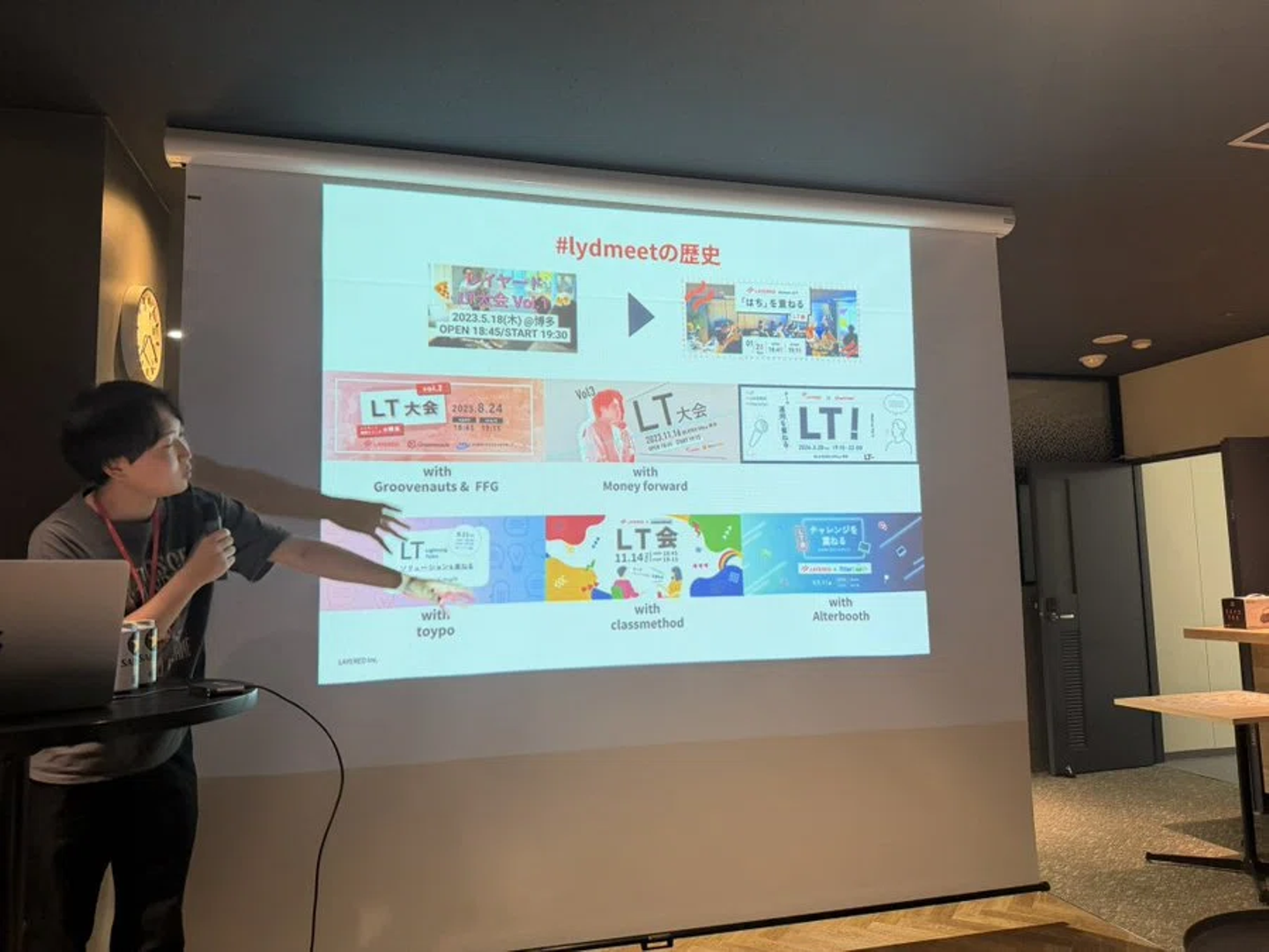 株式会社レイヤードが主催するミートアップイベントです。2023年5月にVol.1を開催し、それ以降は約3か月に1回のペースで開催しています。おもに福岡に在籍するエンジニアが参加し、LT会形式で登壇する勉強会をしています。