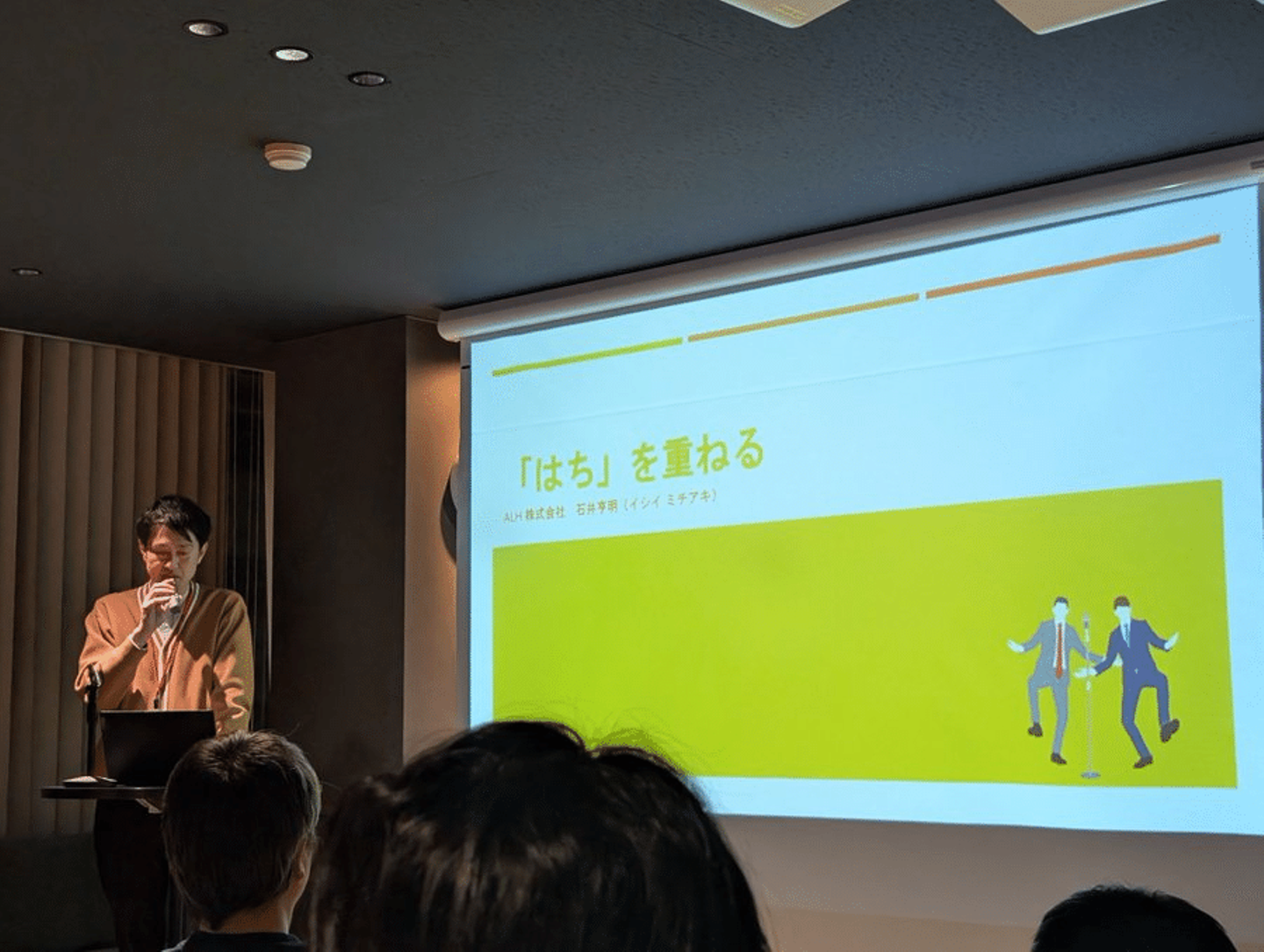 8のつく年齢と8の倍数の年齢のエピソードをしゃべる自己紹介LTを展開してくれました(世界のナベアツ??)。福井さんの旅行譚に続き、ワールドワイドな展開となった気がします。今回はALH株式会社から3名も来ていただき、イシイさんの影響力の高さがうかがい知れました。