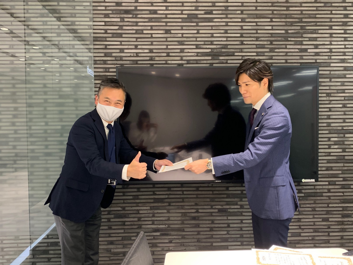 当社の最年長の営業マンが受賞しました!弊社は、平均年齢が29歳と全体の半数が20代の会社ですが、ベテランも若者に負けず劣らず活躍しています。(写真左:最年長営業マン、右:代表)