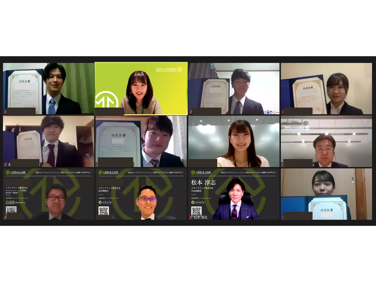 第三波が来てしまい、残念ながらオンラインでの実施となりましたが、経営幹部からのメッセージを伝え、内定者に内定証書も授与することが出来、無事に終えることが出来ました。