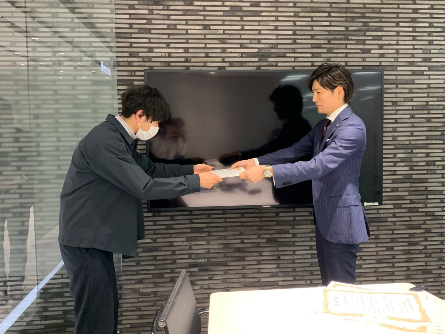 今年はコロナの影響で、例年よりちょっと遅めの内定式を先日11月27日に開催いたしました。