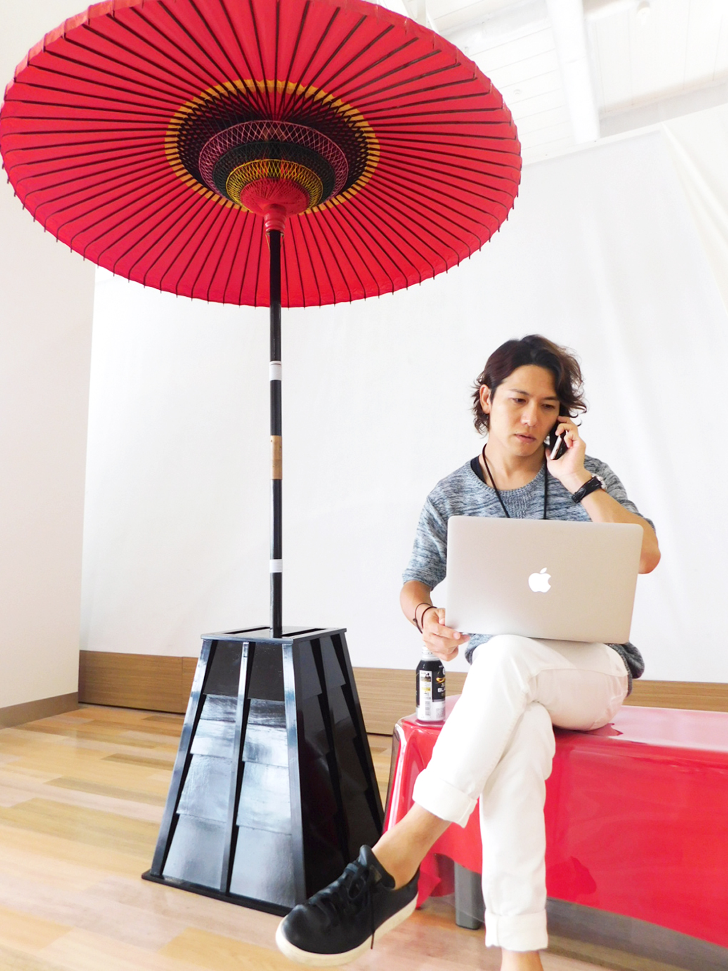 ※赤い椅子と傘は、若葉台メディアセンター1階にあるセットです。