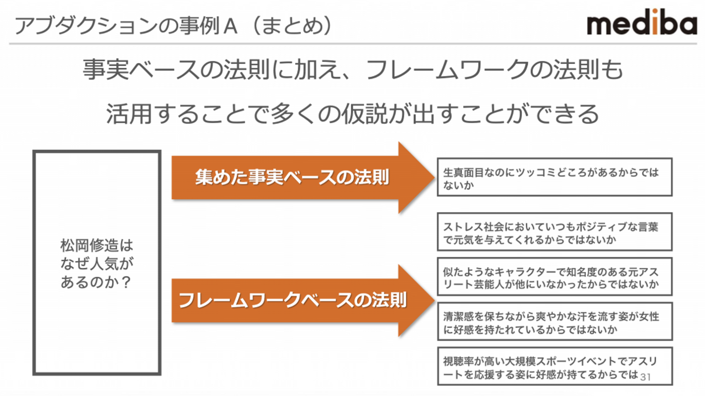 仮説の質向上に悩んでいた私にとって「集めた事実ベースの法則」と「フレームワークベースの法則」という2つの側面からの分析は、改めて実感することや学びの多い内容でした。