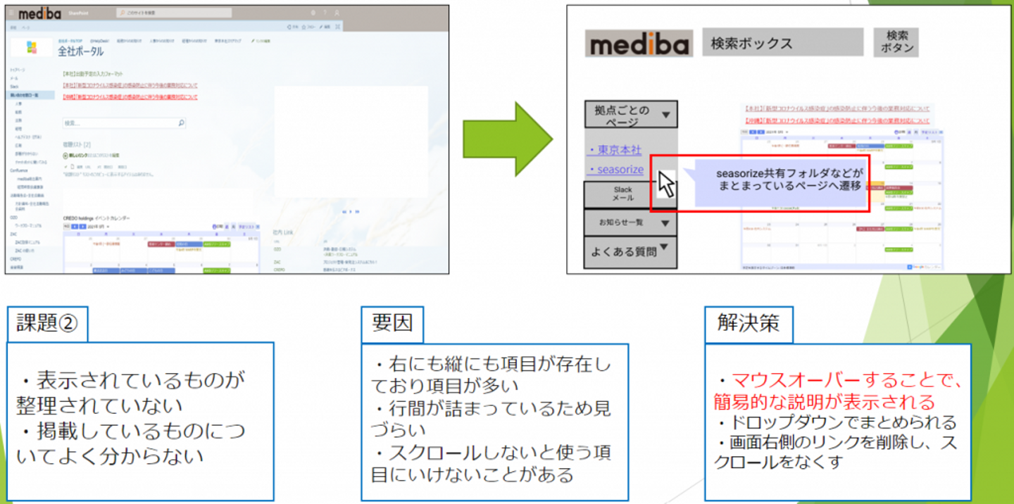 最初に対応したこととして、過去案件に触れてまずはUXの流れというのを理解することに努めました。そこで感じたことが2つあり、1つは自分の視野が狭いこと、もう1つは課題と要因を伝える難しさです。
