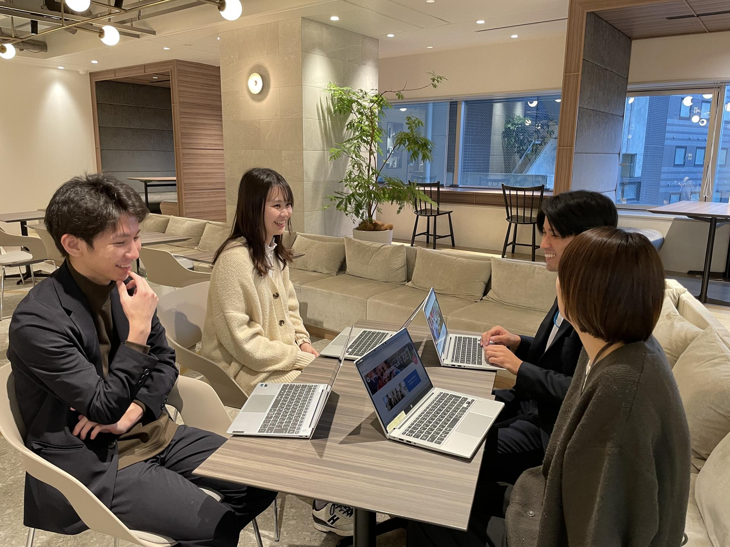 仕事の話だけでなくプライベートのことを話しても問題ないので、リラックスした雰囲気でミーティングを行なうことができます。私はたまに最近食べに行って美味しかったお店や趣味の話をすることもあります。