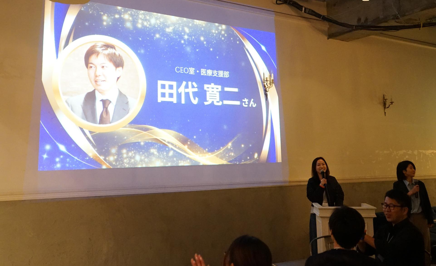 名前が呼ばれた瞬間、直属の上長であるCEO室の室長と医療支援部のマネージャーが喜んで泣いてくれている姿が目に入り、胸がいっぱいになりました。驚きとともに湧いてきたのは、「ありがたいな」という気持ちでした。それだけ日頃から大切にしてもらい、丁寧に向き合っていただいていたのだと実感し、自分一人でここまで来たわけではないと強く感じた瞬間でした。