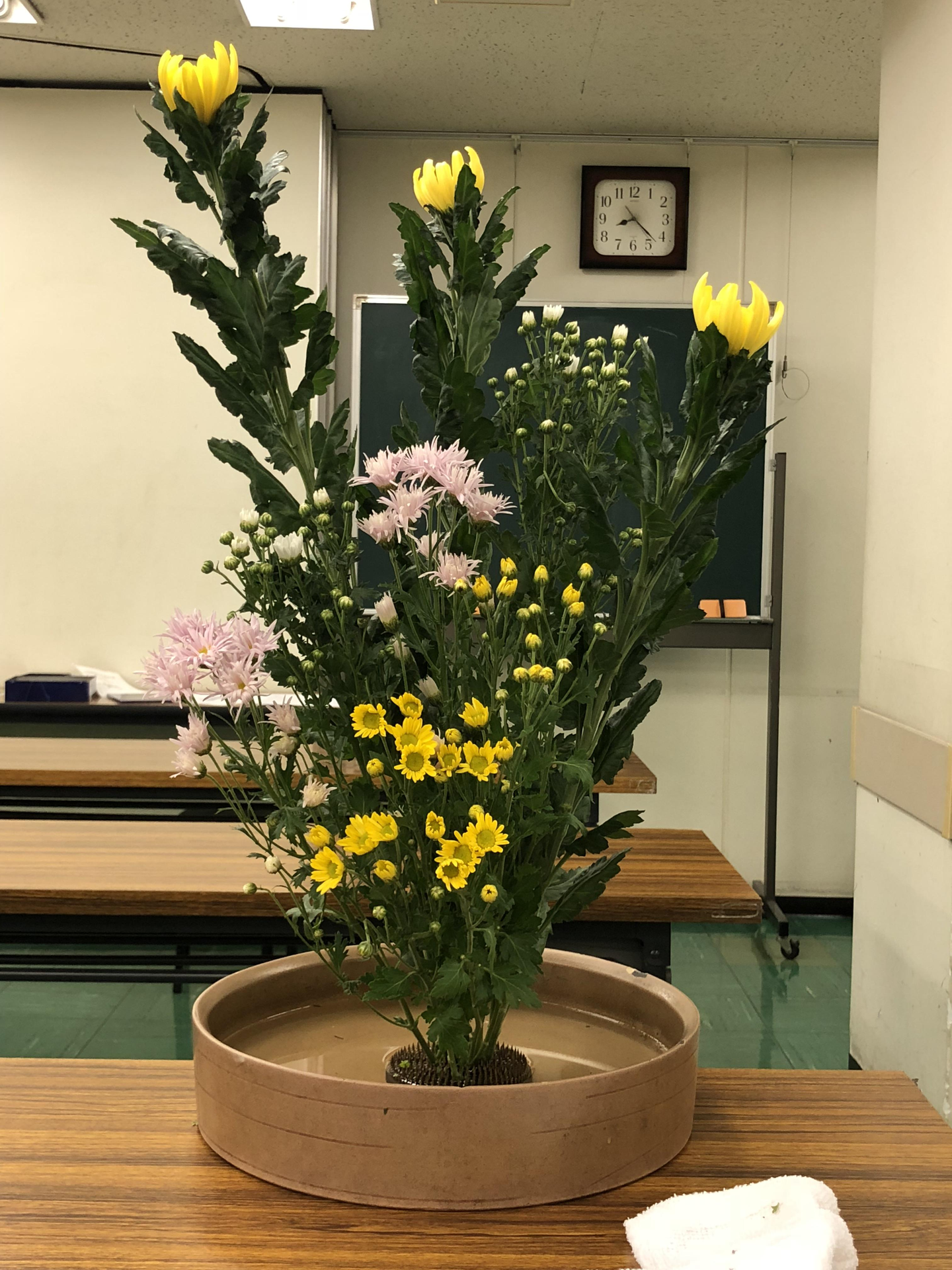 今日はゆく秋を惜しむかのような菊ざんまいで、開花を予想して生け込んでます。(写真を縦にする技術がありませんので…)
