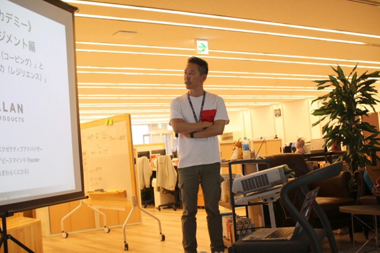 アランメンバーが変化に適応し、心身共に健やかに仕事に取り組むために必要な「ストレスの対処(コーピング)」と「しなやかな変化適応力(レジリエンス)」についての講義でした。