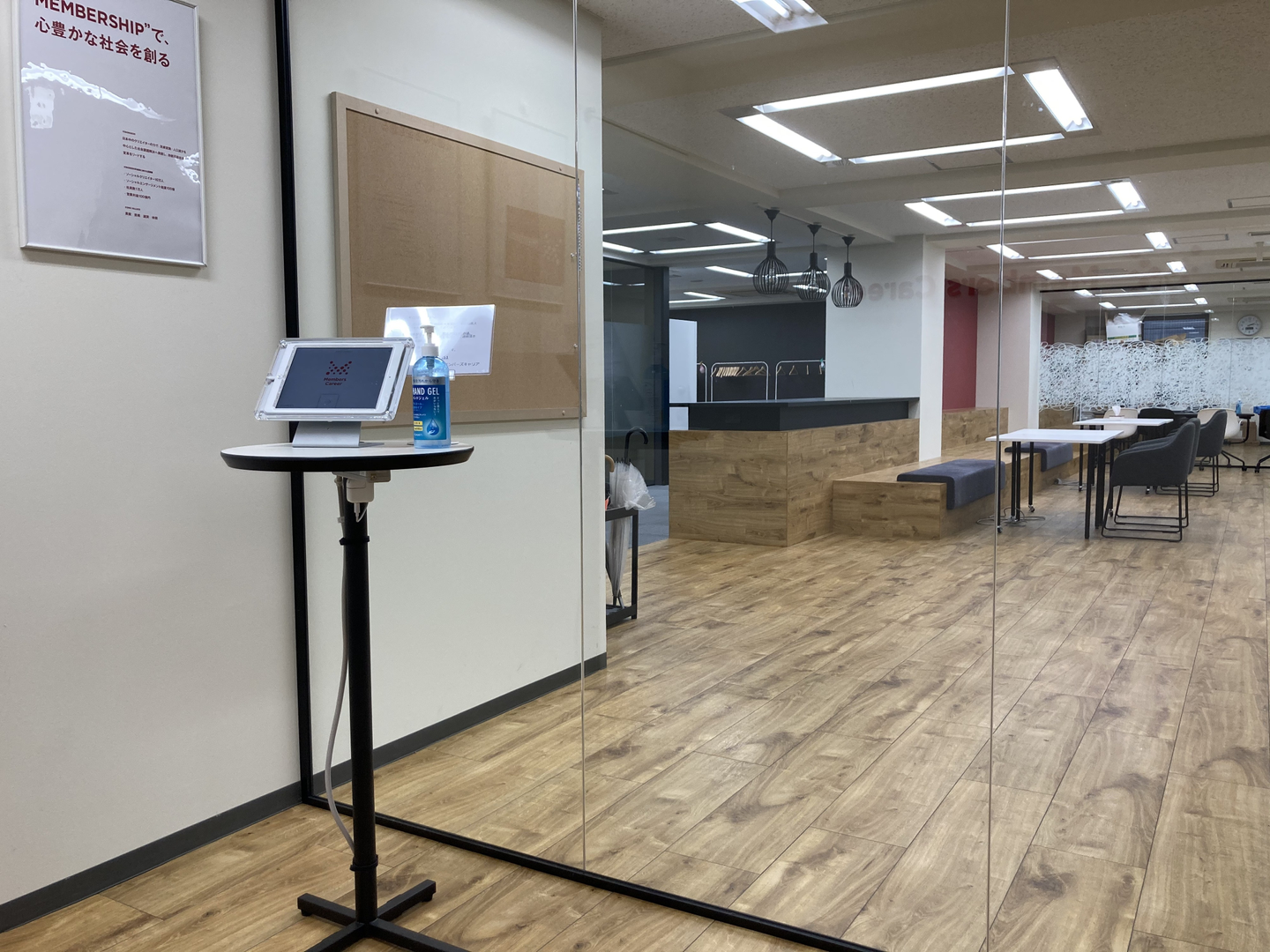 「中の人と目が合うと気まずい」かもしれないですが、来訪していただく方が社内の様子をうかがえて良いのでは、と思っていますがいかがでしょうか。