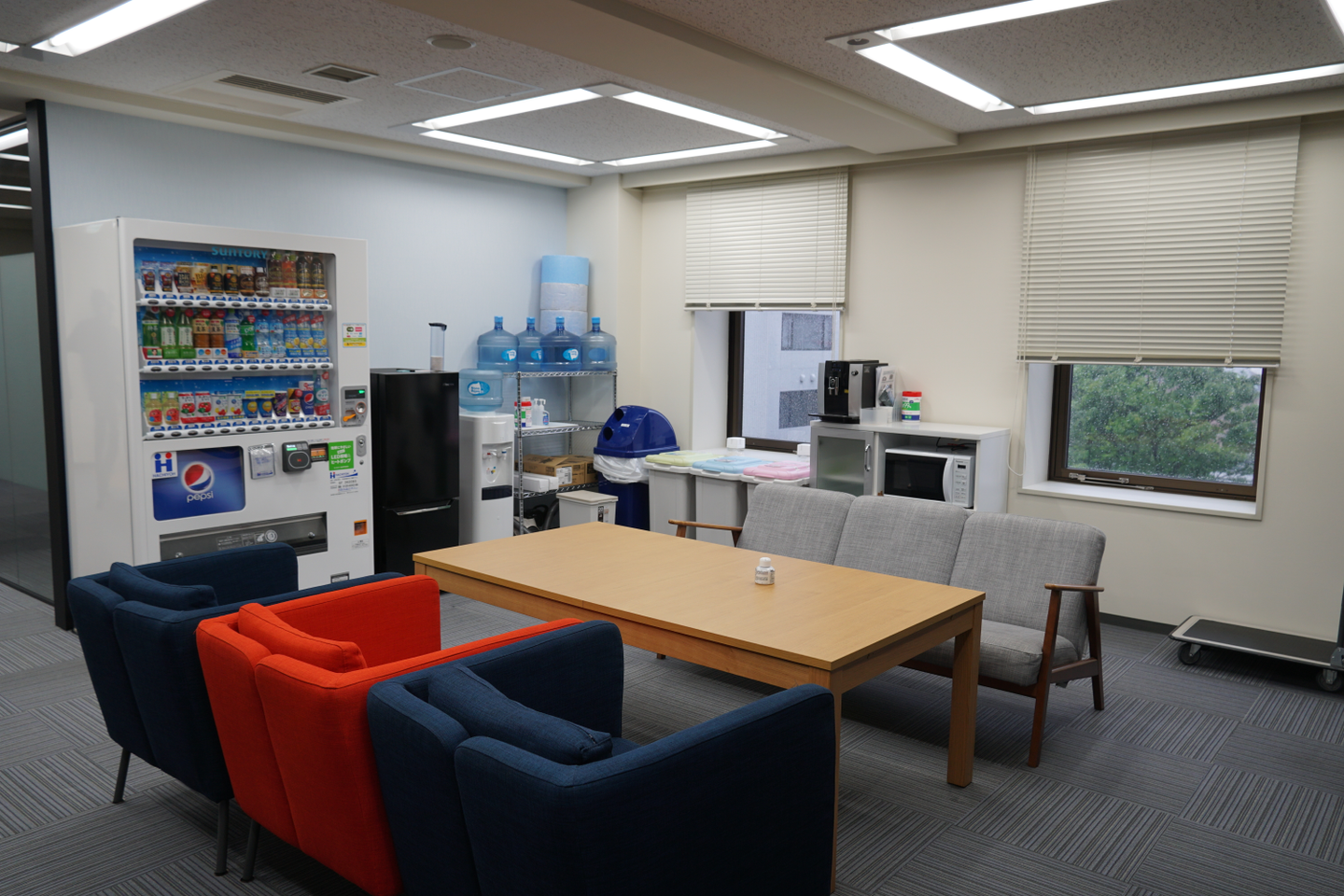 このカウンターの奥には休憩スペースがあり、常に机の上はきれいにされていて、とても清潔感があるスペースです。ここでお弁当を食べたり休憩をとるクリエイターもいますよ。